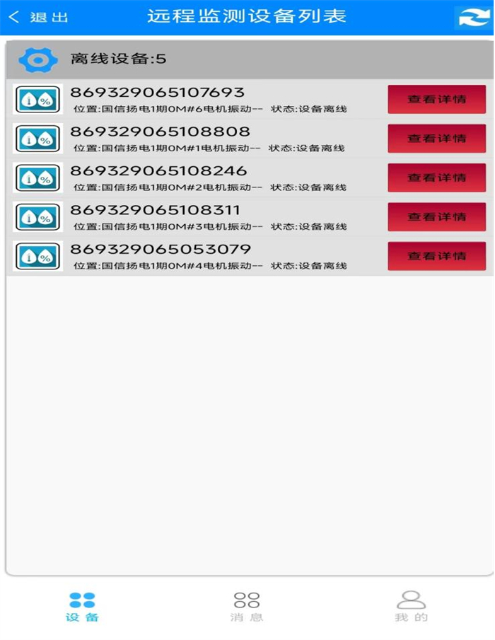 选择需要查看振动传感器(红色为离线、绿色在线)查看详情