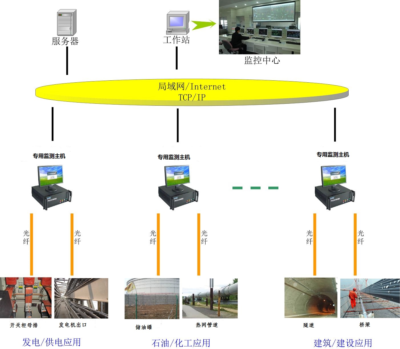 在电力行业,光纤测温系统可用于发电厂发电机出口、高压母排、电缆接头、油罐、变压器的状态监测。